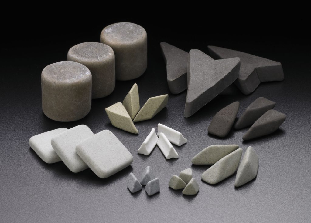 Ceramic and polyester resin (plastic) Medias provide a superior finish to a wide variety of parts when added to a mass finishing machine. While ceramic media can be used on all metal types, polyester resin media is perfect for softer metals such as aluminum, brass, or copper where impingement may cause a problem.